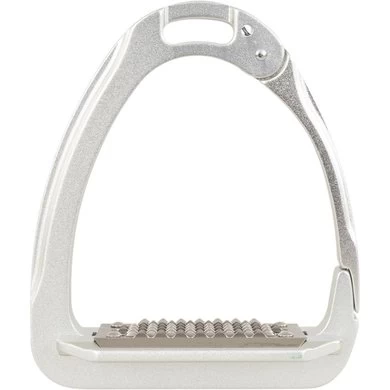 De brede roestvrijstalen antislip beugelzool heeft een grof profiel en extra lange gaten voor de afvoer van zand en water. De beugelzool is licht gekanteld, zodat de hak omlaag wordt gehouden. De afgeschuinde stijgbeugelriemophanging zorgt voor een goede beugelpositie, waardoor de voet in de juiste positie gehouden wordt. Dit geeft de ruiter meer stabiliteit en verbetert de beenligging.