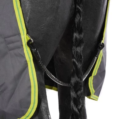 Sterke en duurzame 900D polyester buitenkant met glansverhogende polyester voering, met Disc Front. Fibrefill-isolatie houdt je paard warm op koudere dagen. Wordt geleverd met een afneembare capuchon.