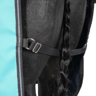 Sterke en duurzame 900D polyester buitenkant met glanzende polyester voering. Fibrefill-isolatie houdt je paard op koelere dagen warm.