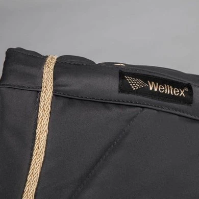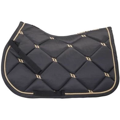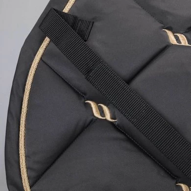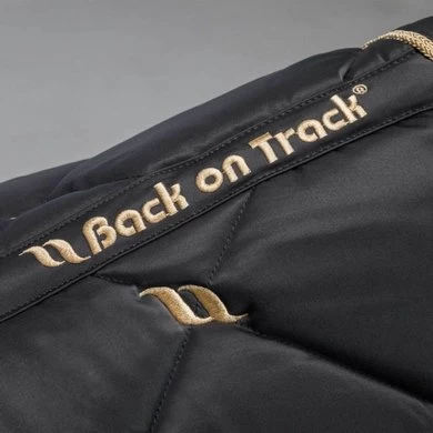 Klassiek mooi sjabrak. Gemaakt in een chique quilt stof. De Back on Track nr 1 sjabrak heeft model gestaan voor de perfecte pasvorm, de hoge kamer geeft extra comfort bij de schoft. De rugkant is uitgevoerd in ons nieuwe wafel WellTex materiaal. Hierdoor beter contact met het paard. Het sjabrak is volledig afgebiesd met gouden koord. Naast de Back on Track functionaliteit is dit sjabrak gewoon prachtig om te zien.