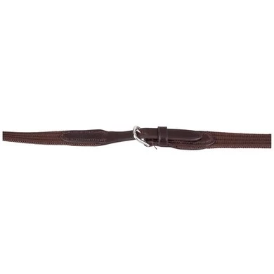 Linnen teugel met laklederen uiteinden, handstops, blinde sluitingen en een ronde gesp, 19 mm.