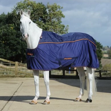 De Bucas Therapy deken is gemaakt van een gepatenteerde 21e eeuw Therapy stof, gemaakt van het beste roestvrij staal garen in de wereld. Het gewatteerde Therapy bovenste deel weerspiegeld de magnetische velden in het lichaam, dit stimuleert de bloedsomloop en de zuurstoftoevoer wordt ondersteund. Dit zorgt voor ontspannen spieren en ondersteunt bij zwellingen, ontstekingen en sneller herstel.  De deken kan 24/7 op het paard blijven liggen wanneer dit nodig is. Er wordt echter wel aangeraden om het gebruik op te bouwen en te monitoren tijdens het eerste gebruik. Het materiaal in de deken warmt de spieren op, hierdoor kan het paard gaan zweten na langdurig gebruik. De Bucas Therapy is bij uitstek geschikt voor paarden met chronische artritis of rugproblemen. Het ondersteunt het natuurlijke herstelvermogen. De Therapy eigenschappen worden niet uitgewassen bij het wassen van de deken. Â