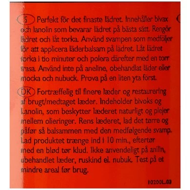 Voedt en verzorgt, ideaal voor nieuw en fijn leder. Dringt tot diep in het leder door en houdt het leer in een perfecte conditie. De zachte balsem is makkelijk in gebruik en trekt snel in. Bevat onder andere wolvet en bijenwas. Inhoud 500 ml.