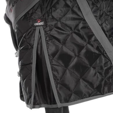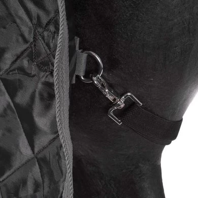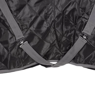 Sterk en duurzaam staldeken van 420D buitenstof met 100 g of 300 g vezelvulling en gladde voering voor een ideale pasvorm. Dubbel verstelbare voorsluiting met cliphaken en D-ringen, schoudervouw, kruissingels, bilkoorden en staartflap. Daarnaast heeft de deken een brede fleecekraag wat de deken extra comfortabel maakt voor het paard en de manen beschermt.
