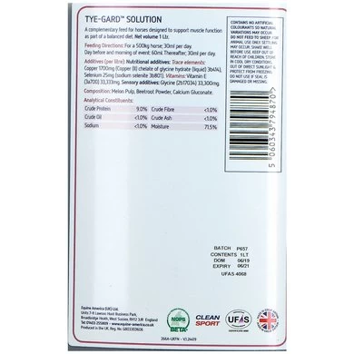 Equine America Tye Gard is een supplement dat ontwikkeld is voor paarden die op hoog niveau moeten presteren. Deze paarden hebben vaak zware inspannende trainingen of wedstrijden. Hierdoor hebben ze een grotere behoefte aan energierijk voedsel. Equine America Tye Gard bevat veel verschillende voedingsstoffen die bijdragen aan een goed werkende spierfunctie.