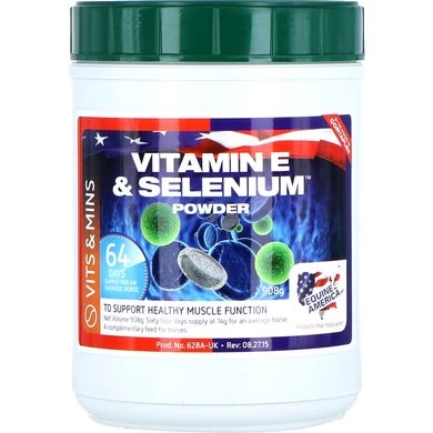 Equine America Vitamin E and Selenium ondersteunt de stofwisseling van de spieren van uw paard. Dit product wordt aangeraden bij paarden die intensief trainen of zwaar werk doen. Ook is het geschikt voor paarden die diëten met hoge voedingswaarden. Selenium en vitamine E zorgen samen voor ondersteuning van de spieren. Vitamine E geeft bescherming tegen vrij radicalen. Selenium werkt als stabilisator voor het lichaamsweefsel en draagt bij aan het in stand houden van de stabiliteit van rode bloedcellen. De vitamine E in dit product is van hoogwaardige kwaliteit en bovendien natuurlijk. Natuurlijke vitamine E wordt beter opgenomen dan de synthetische vorm.