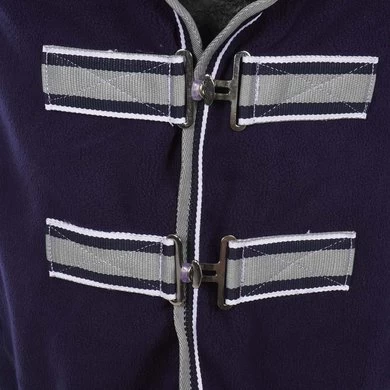 Een deken van 380 g / m² polar fleece met hoge dichtheid en gewatteerde rand rond de hals. Man- vrouwborstsluiting van vernikkeld staal. Kruissingels. Nylon voering op de borst.