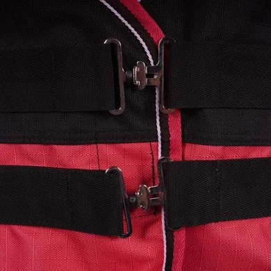Waterdichte en ademende outdoordeken van 1200 denier ripstop polyester met getapete naden en nylon voering. Beschikt over een zeer grote waterdichte staartflap versierd met een reflecterende band, synthetische schapenvachtvulling op de schoft in de deken, lage kruissingels en bilkoorden. Man/vrouwsluitinf op de borst, versterkt met klittenbanden, met maataanduiding op rubberen patch.