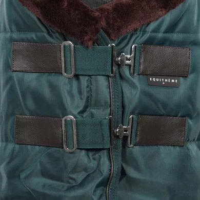 Staldeken met hals van synthetisch schapenvacht, met 200 gr / m2 polyfill en polykatoen voering. Lage kruissingels en staartriem. Dubbel verstelbare man/ vrouw gespen met klittenband op de borst. Ideaal voor in de stal, deze deken combineert comfort en stevigheid. Samenstelling: 100% polyester.