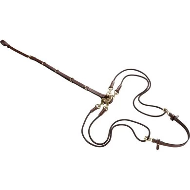 Gevuld leer op de borst en polyester touw met pulleys. Bevestigt met haken.