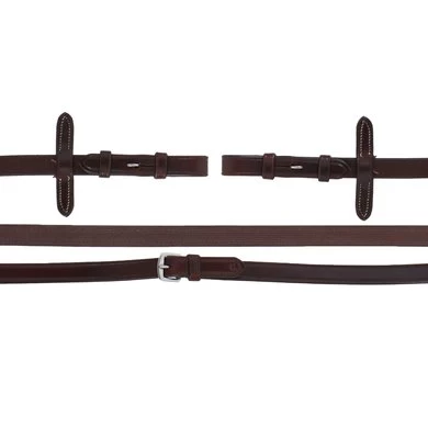Italiaanse koeienhuid hunter teugels met haken. 16 mm. Zwart stiksel. Roestvrij stalen gespen.