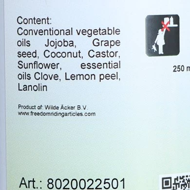 Ultra verrijkte formule. Afgeleid van een complex van plantaardige oliën en extreem rijke etherische oliën, bedoeld om een gezonde hoorngroei te bevorderen. Rijk aan meervoudig onverzadigde vetzuren om een optimale hydratatie van de hoef te behouden. Vooral inzetbaar op droge hoeven met een breekbare en broze hoorn. Kan ook worden gebruikt om de groei van een kwaliteitshoorn te stimuleren na kwetsuren van de hoefwand. Samenstelling: Conventionele plantaardige oliën (Jojoba, Kokosnoot, Castor, Druivenpit, Zonnebloem). Etherische oliën: kruidnagel, citroenschil. Andere producten: Lanoline. Gebruiksaanwijzing: Meng het product goed. Over de hele hoef aanbrengen (zool, kroonrand en wand). Afhankelijk van de behoefte aan groei, herhaal dit tussen 1 en 2 keer per dag totdat het gewenste resultaat is verkregen. Verwijderd houden van kou en hitte.
