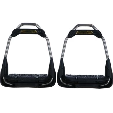 De Air’S stijgbeugels bieden een traditionele architectuur (roestvrijstalen frame) met technische kenmerken voor meer comfort, betere balans en geoptimaliseerde grip. De technische opties van de Air’S stijgbeugels kunnen worden gekozen: oogoriëntatie (30° georiënteerd of recht) en helling van de vloer (vlak of 10° schuin).