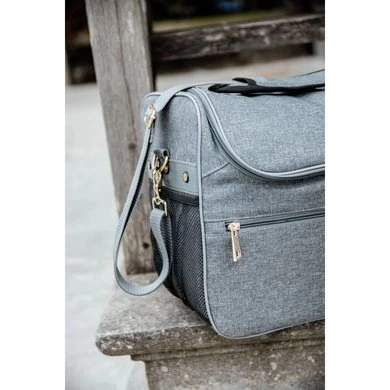 Aan de onderkant van de tas zijn voetjes, die voorkomen dat je tas direct op de grond moet staan. Om vuil te verwijderen gebruik je best een vochtige doek.