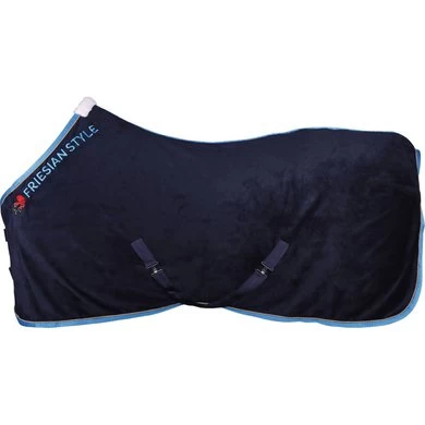Fleecedeken met borduursel langs de hals, met afneembare kruissingels, een dubbele voorsluiting met klittenband en een staartlus. Materiaal: 100% polyester