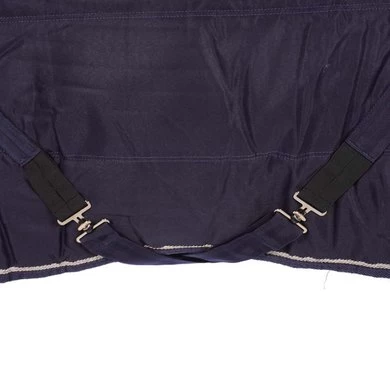 Staldeken model Highliner met comfortabele mininek en een optimale pasvorm. 300D polyester, 200gr vulling en nylon voering. Met loopsplit, staartflap, lage kruissingels met elastieken inzet. 2 voorsluitingen en afneembare elastische bilkoorden.