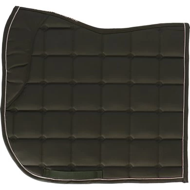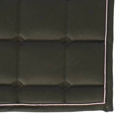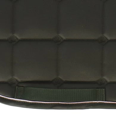 Zadeldek met een piping rondom. Voorzien van zadel- en singellussen en met DC borduring. Materiaal: 100% Polyester, vulling 1cm PU foam en 200 gram polyfill, voering 100% polyester quick dry mesh.