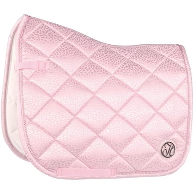 Zadeldek met chique tone-tone luipaard print. Voorzien van een sierkoord en een metallic piping. Uitgerust met een singellus en klittenband op de zadellussen.
