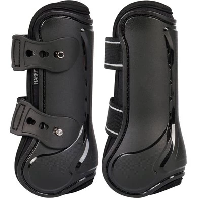 Prachtige peesbeschermers met een perfecte pasvorm. Met sterke, elastische sluitingen. Door de speciale knopsluiting is er geen klittenband nodig. De ventilatiegaten in de schaal zorgen in combinatie met het air-neopreen voor ventilatie en beluchting. Door de optimale pasvorm heeft het paard veel bewegingsvrijheid. De TPU buitenschaal beschermt tegen aantikken en heeft een extra verdikking op de pees en op de kogel voor extra bescherming. Lengte schaal achterzijde: 15cm (17,5cm incl. neopreen). Dikte neopreen: 5,5mm.