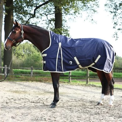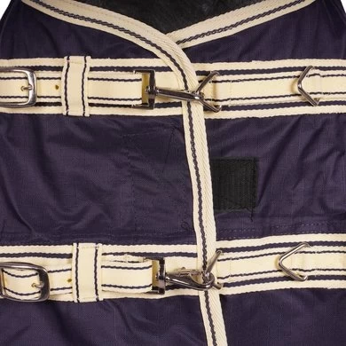 De Horka outdoor deken high neck is 0g en gemaakt van 600D ripstop polyester aan de buitenkant. De deken is 3000mm waterdicht en ademend tot 3000mvp. De binnenvoering is van polyester. De deken heeft een dubbele clipsluiting op de borst met gespen en karabijnhaken, kruissingels onder de buik met rubber stops, afneembare bilriemen en een wijde staartflap. Daarnaast heeft de deken een hoge hals en extra lange en wijde loopsplitten voor een betere bewegingsvrijheid.
