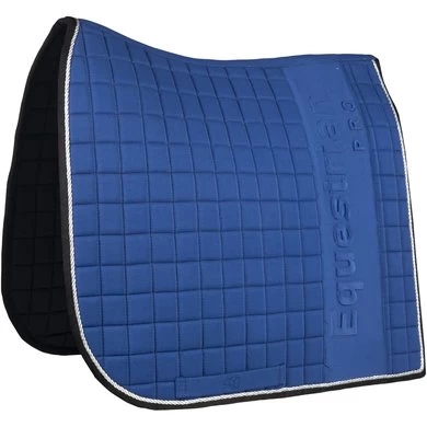 Chique en goed passend dressuur zadeldekje. Het dekje is afgewerkt met een zilverkleurige touwbies en beschikt over een verticaal embossed logo op de zijkant.