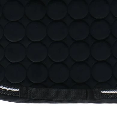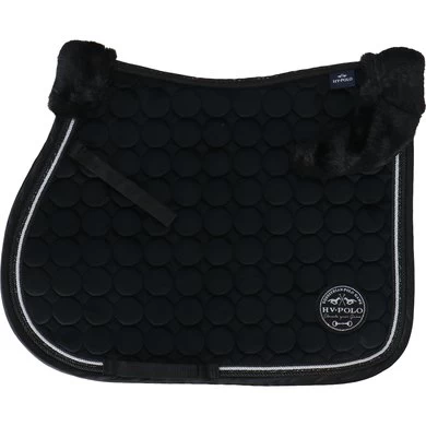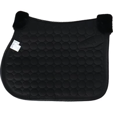 Fluweelachtig zadeldek met chic quiltpatroon. Zacht imitatiebont op de schoft en bovenop de achterkant van het zadel. Chique gedraaide koorden langs de bies. Rijkelijk verfraaide badge met borduurwerk en steentjes.