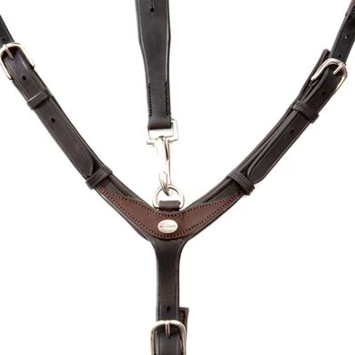 Het voortuig “Everyday”, gemaakt van geolied leer, is een diep driepunts voortuig met diepe zijdelingse bevestiging aan het zadel. Een zachte vulling bij de schoft voorkomt dat de manen gaan schuren. Dubbele elastische inzetstukken langs de schouder zorgen voor voldoende bewegingsvrijheid van het paard zonder het zadel achterover te laten glijden. Bijzonder is dat de borstgordelband aan de voorkant van de borst is aangepast zodat je niet meer onder de buik van het paard hoeft te rommelen. De onderste riem wordt bevestigd met een kleine leren lus of een verwijderbare karabijnhaak. Je hebt dus minder lussen en gespen, wat de kans op inrijgen aanzienlijk verkleint. De gespen hebben zachte leren kussentjes.