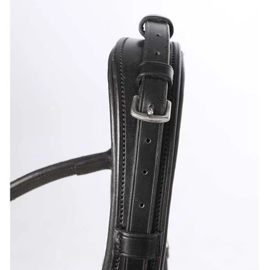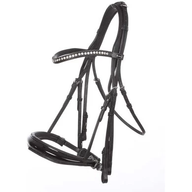 Gemaakt van het beste Duitse kwaliteitsleer met een neusriem, aan beide kanten verstelbaar. Neusriem zacht gevoerd en verzonken, nekstuk in het oor verzonken en opgevuld. Een paar wangstukken overlopen. Gebogen hoofdband met grote witte strass steentjes. Neusriem ook apart verkrijgbaar (art. Nr. 242 51). Maat: V, WCleur: zwart / zwarte ondertapijt, zwart / witte ondertapijt, zwart / zwarte ondertapijt, zwart / witte ondertapijt, zilver: art.nr. 193 51