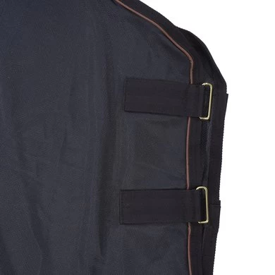 Opvolgend aan de ontwikkeling van ons Recuptex deken hebben we ook een nekstuk ontworpen dat perfect past bij dit deken. Gebaseerd op de Bekaert BEKINOX® technologie, deze bevatten het fijnste garen in inox (vezel in roestvrij staal) dat mee in de stof verweven zit. Het creëert zo een kooi van Faraday welke het magnetisch veld in het paardenlichaam reflecteert. Door het behoud van deze velden wordt de bloedcirculatie en het zuurstoftransport gestimuleerd en verbetert zo het herstel-en genezingsproces in een natuurlijk, beschermende omgeving.Het nekstuk is gemaakt uit een zeer stevige geweven stof die zowel in de zomer als in de winter gebruikt kan worden in combinatie met andere dekens. Dit nekstuk is ideaal te gebruiken voor of na het rijden om zo te helpen bij een betere spierontspanning, maar kan ’s nachts ook op blijven liggen. We raden wel aan van het deken geleidelijk te introduceren omwille van het soms tintelende effect. Dus best beginnen de eerste dagen met een uur en zo over dekomende dagen het neck langer op te laten.Machine wasbaar op 30°, geen droger.