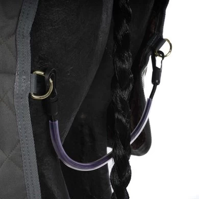 Het showdeken heeft een vulling van 160gen is van hoogstaande kwaliteit. De binnenzijde is gevoerd met artificieel konijnenvel voor een ultra zacht gevoel tegen de huid en om schuurplekken op borst of schouders te voorkomen. De artificiële konijnenvacht (100% diervriendelijk) maakt kleine luchtzakjes aan die de lichaamswarmte van het paard gaat opvangen en behouden. De zachte haartjes van de artificiële konijnenvacht verhogen de glans van de paardenvacht. Dankzij de hoge warmte-tot-gewicht ratio biedt dit deken een maximaal comfort.De artificiële wol beschermt de schoft en bedekt de hele rand rond hals en borst om schuurplekken en drukplekkente voorkomen en om meer comfort te bieden. Deze extra wollen bies zorgt voor eenuitermate klassevolle look. Het wafelmotief aan de buitenzijde zorgt ervoor dat de paarden het deken zeer moeilijk kunnen stukbijten. De buitenstof is gemaakt van 600D high tenacity polyester. Vooraan wordt het deken dichtgemaakt door middel van 2 simpele verstelbare borstsluitingen die zorgvuldig met imitatieleder werden afgewerkt. De twee kruissingels zijn eveneens verstelbaar en met leder afgewerkt. Ook zijn deze volledig afneembaar wanneer u verkiest geen buiksingels te gebruiken. De bilsluiting bestaat uit een dikke elastiek met een plastic omhulsel waardoor deze zeer gemakkelijk af te wassen is. Aan beide zijden werd een gesp geplaatst waardoor de bilsluiting vlot afneembaar is. Het showdeken mag gewassen worden in de wasmachine op 30°, geen droger.