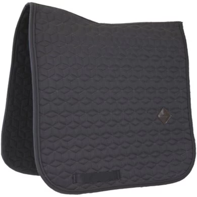 De buitenkant van de zadeldoek is gemaakt van een katoenachtig polyester in kubus quilting. Aan de linkerkant van de zadeldoek is een kleine vegan lederen patch met het Kentucky logo, onder het logo is genoeg plek gelaten om iets te borduren. De voering van het dekje is een vocht afvoerende katoen-polyester mix.