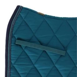 De skin friendly velvet zadeldoek is verkrijgbaar in zowel sping als dressuur vorm. Er is enkel een riempje voor de singel, zodat je geen storende riempjes voor je zadel hebt. Het Kentucky logo is iets hoger geplaatst, zodat er nog voldoende ruimte is om het dekje te borduren.