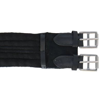Een gevulde singel met split rund leren verstevigingen aan beide kanten. Rvs rolgespen op leren riemen en leren passanten.