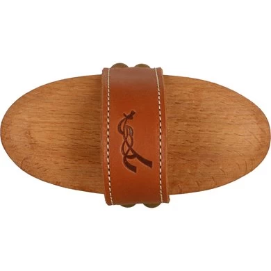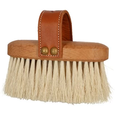 Kleine borstel met zachte haren. Met een leren handvat en lange zachte haren. S