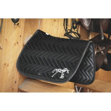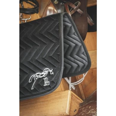 Een klassiek sjabrak van fluweel met zwarte rand en lak bies met Point Sellier stiksel. “V” -vormig doorgestikt en de voering is gemaakt van ademende stof. Aan beide zijden ecru geborduurde Pénélope-logo’s. Machine wasbaar 30°C, niet in de droger. Samenstelling: buitenkant 100% polyester. Vulling en voering 100% polyester.