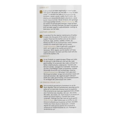 Ledervet is een product om leder regelmatig te onderhouden. Trekt goed in de poriën van het leder en houd het leder soepel. Conserveert het leder en is te gebruiken op meubelen, tassen, jassen, zadels, hoofdstellen, etc. Altijd op een onopvallende plaats uitproberen, vooral op een nieuw stuk leer. Bevat minerale oliën gemengd met hoogwaardige wassen.