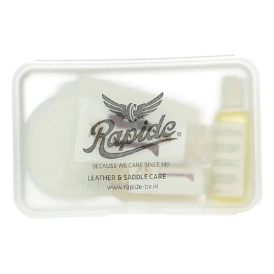 Compleet onderhoudssetje met 3 Rapide lederonderhoud producten, 1 sponsje en doekje. Voor het onderhoud van zadels en andere lederen producten.