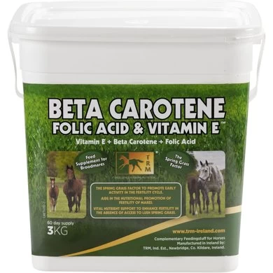 BETA CAROTENE, FOLIC ACID & VITAMINE E komen vooral in het voorjaarsgras voor. Tijdens de eerste maanden van het dekseizoen daalt het niveau van deze vitaminen tot ver onder de normale behoefte. Dit unieke product is speciaal voor fokkers om hun merries in een optimale conditie te krijgen en ondersteunt de voorbereiding op voortplanting.