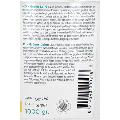 Groene leem is een stof rijk aan mineralen, sporen en enzymen.