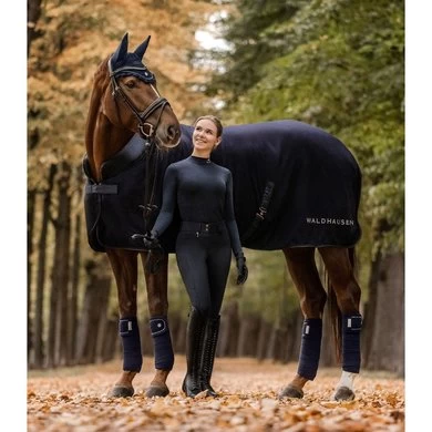 Elegante fleecedeken met zacht gewatteerde kraag bij schoft en nek. De fleecedeken is gemaakt van hoogwaardig antipillingfleece en zorgt voor een optimale vochtafvoerende werking. Met tonifiërend sierkoord en glinsterende Waldhausen-letters.