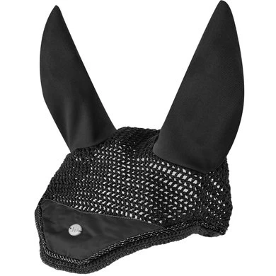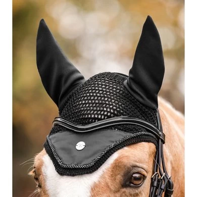 Kwaliteitsvliegenmuts met luchtdoorlatende mesh-oren. Met een zilverkleurig metalen logo en een glinsterend sierkoord.