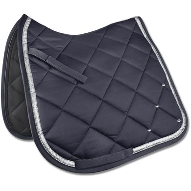 Klassiek, eersteklas zadeldek met glitterafwerking. De extra strass-steentjes maken van dit zadeldek een echte blikvanger. De functionele onderkant zorgt voor een optimaal ademend vermogen. 8 mm schuim en 250 g/m² vulling zorgen voor een ideale drukverdeling.