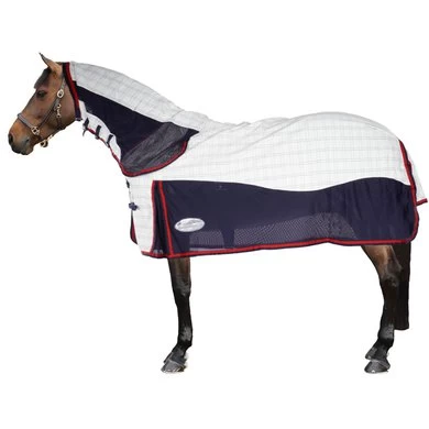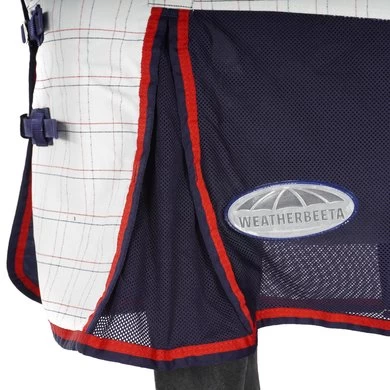 De WeatherBeeta Breeze met Surcingle III in een combohalsontwerp is een ademend en koel 270g polykatoen bovenwerk met polyester gaaspanelen voor de ultieme luchtstroom voor de warmere maanden. Met schoft-reliëfkussen voor extra comfort en met 201D polyester gevoerde schouders, manen en staartflap om wrijving te voorkomen. Traditionele zijvouw voor natuurlijke beweging, volledig omgeslagen staartflap, borstriem met dubbele gesp, verstelbaar verborgen kruisje en elastische afneembare beenriemen. UV-blok 95% +