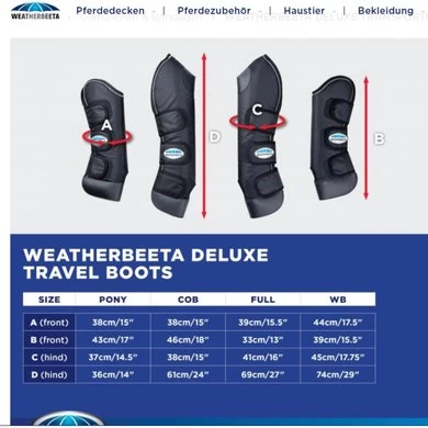 De WeatherBeeta Deluxe transportbeschermers hebben een duurzame en sterke 1200 denier buitenlaag voor bescherming met een dichte schuimrubberen binnenzijde en nylon voering voor comfort. Deze transportbeschermers zijn extra lang voor gecombineerde knie- en hakbescherming. Ze zijn voorzien van PVC-slagplaten aan de onderkant en een extra slagkussen op het spronggewricht met 3 eenvoudig te gebruiken aanraaktape-sluitingen.
